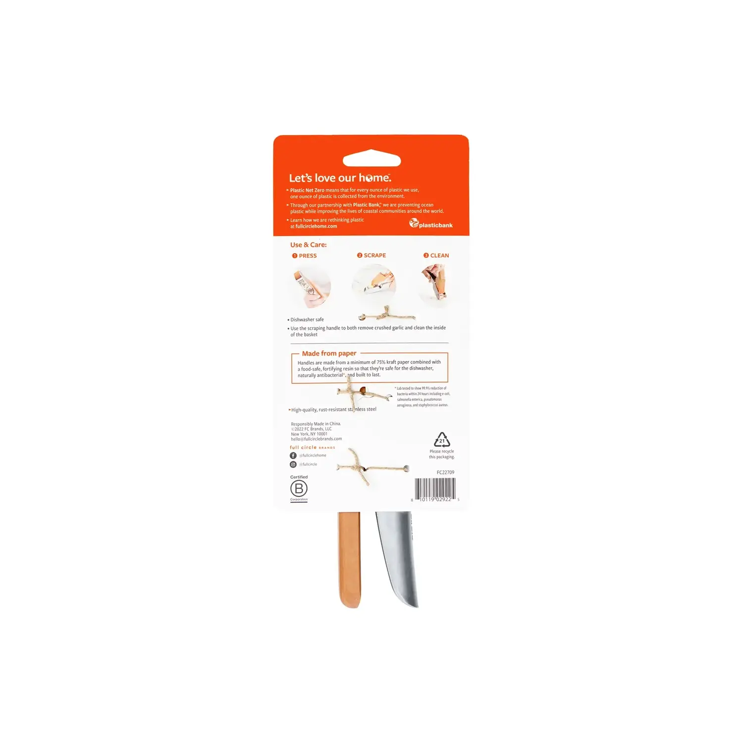 This simple yet sophisticated design is easy to clean and easy to use–no more sticky garlic fingers!