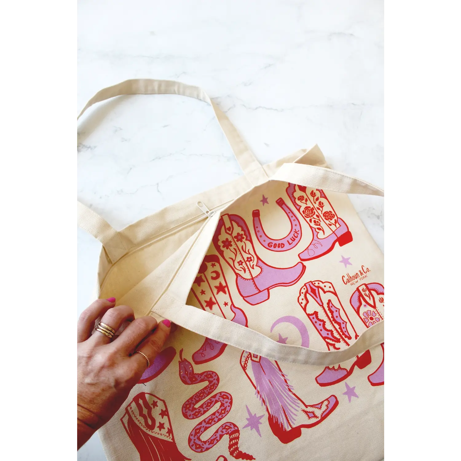 Tote Bag/Zipper Closure | Howdy Cowgirl | Pink/Red