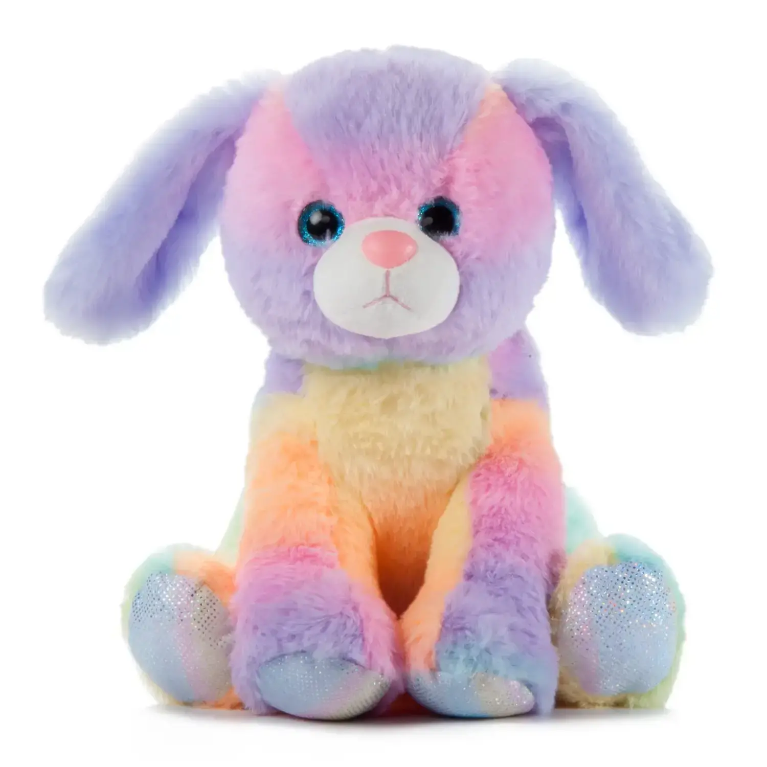 Your child can make hours of play with this plush toy featuring a rainbow pattern.