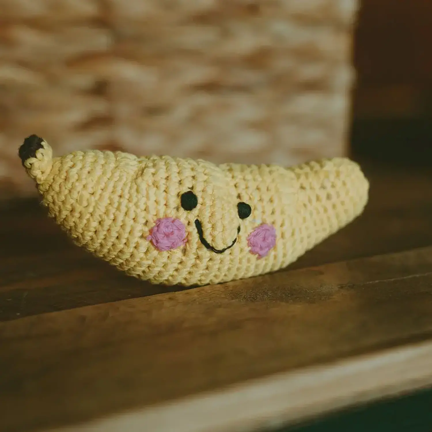 This sweet little stuffed banana rattle is just right for little hands to grab and shake.