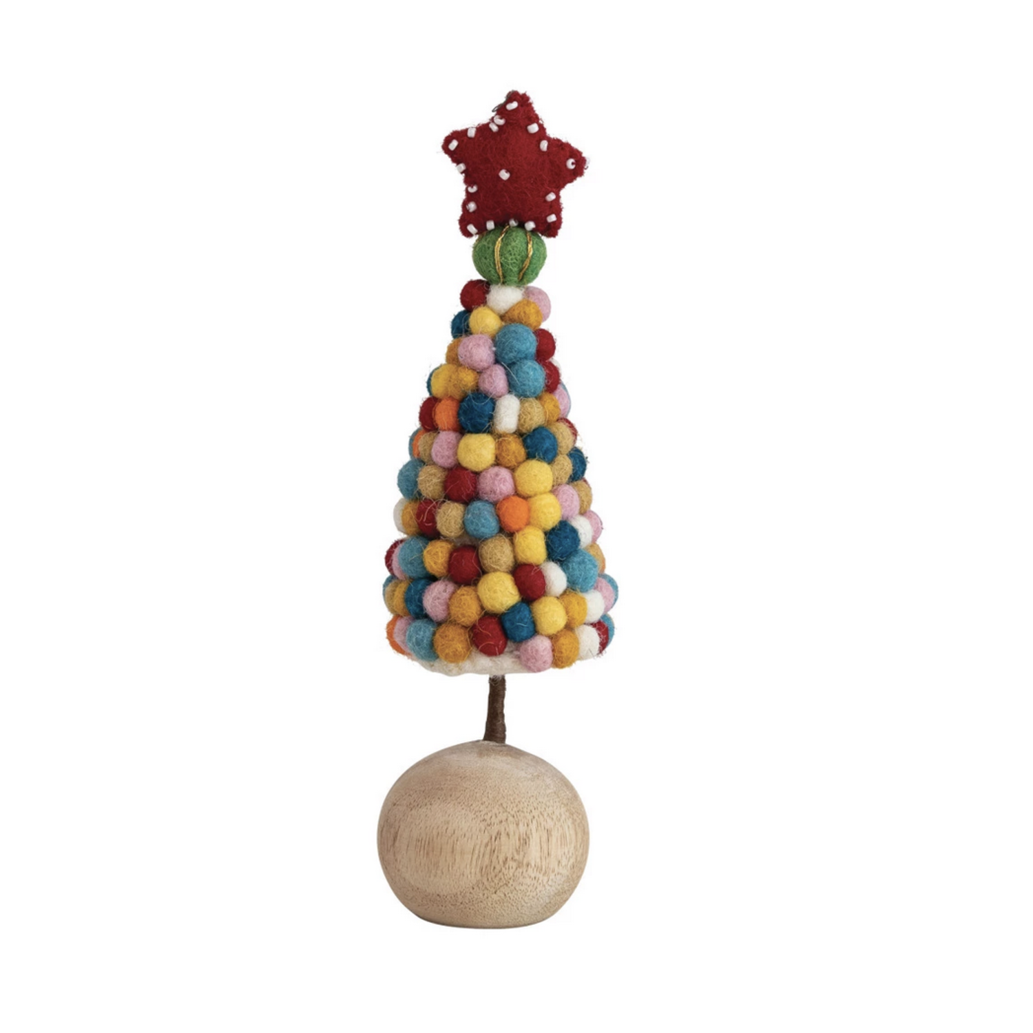 Felt Pom Pom Tree | Beaded Star | Wood Ball Base