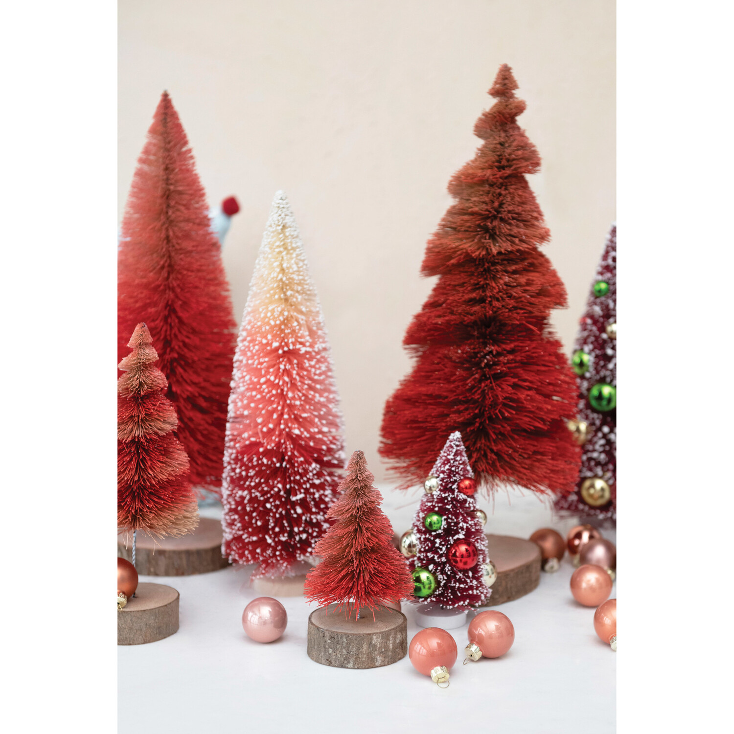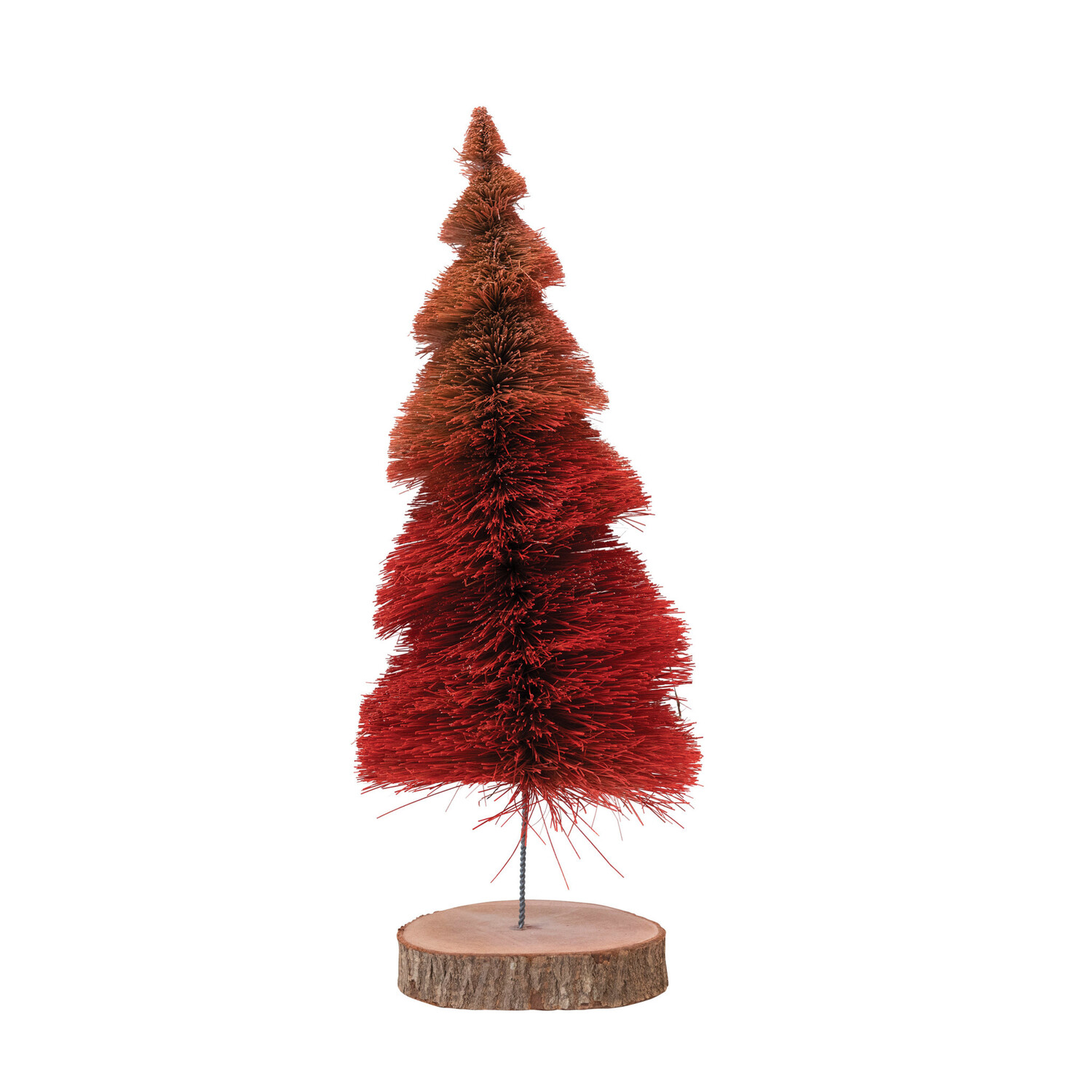 Sisal Bottle Brush Tree with Wood Slice Base, Red Ombre color.