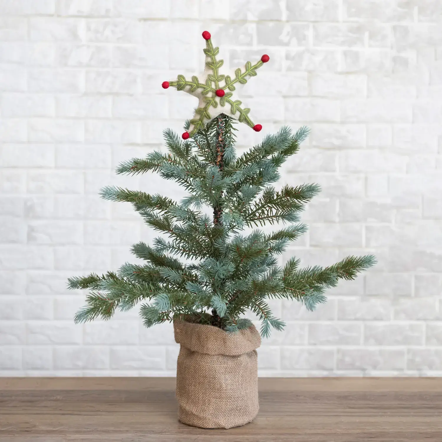 Tree Topper | Wool Felt | Green Holly | Red Poms