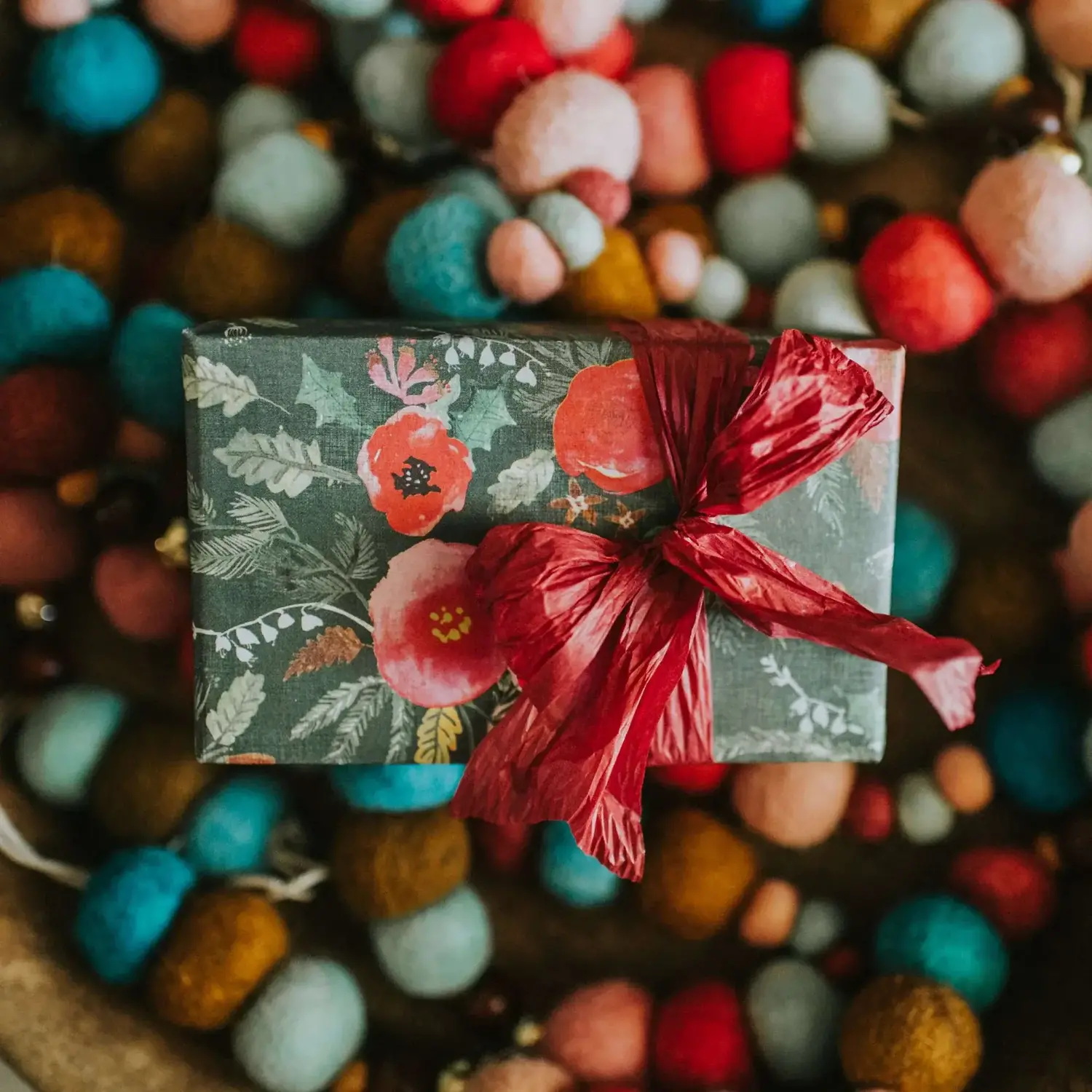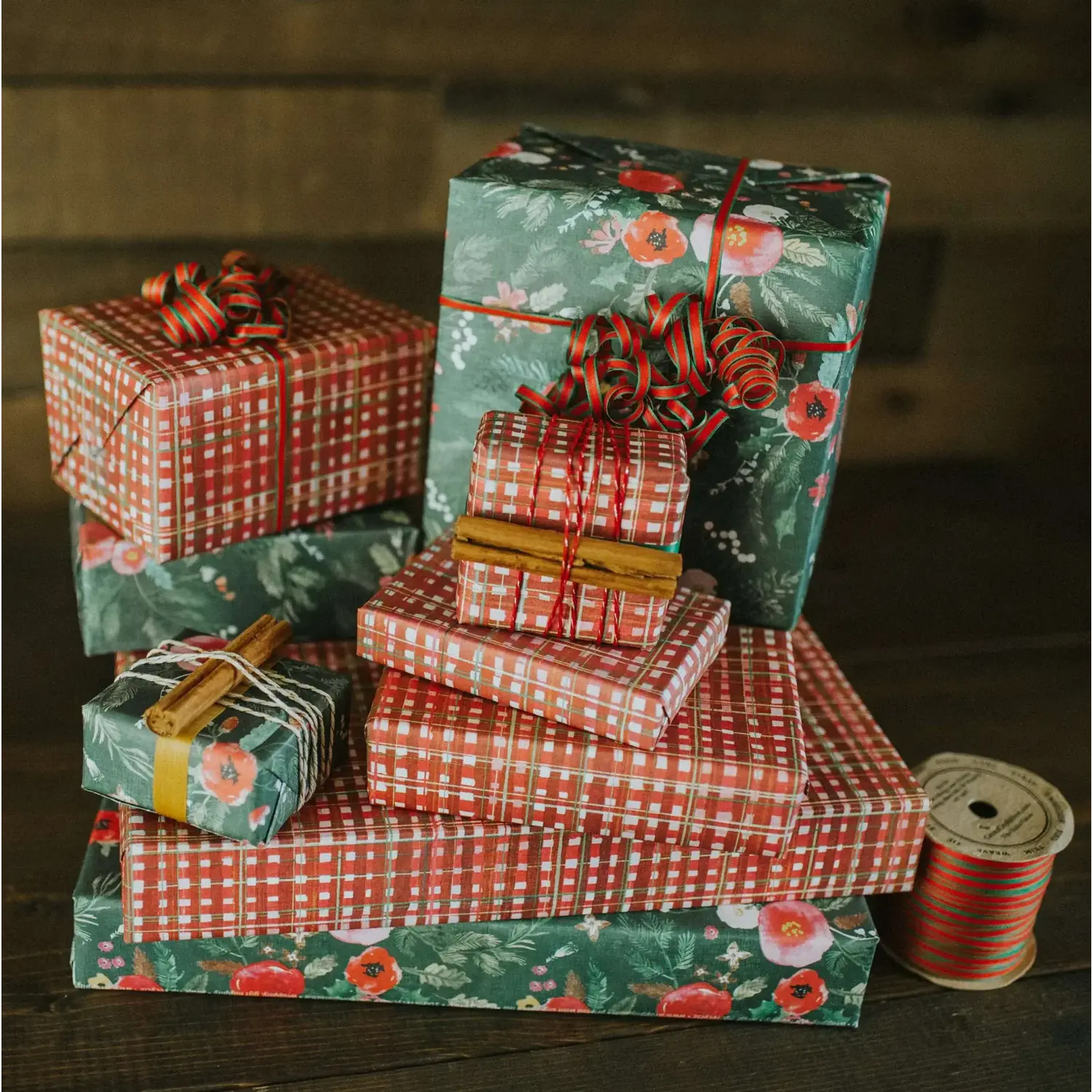 Wrapping Paper | 2-Sided Eco | Homespun Plaid/Winter Floral
